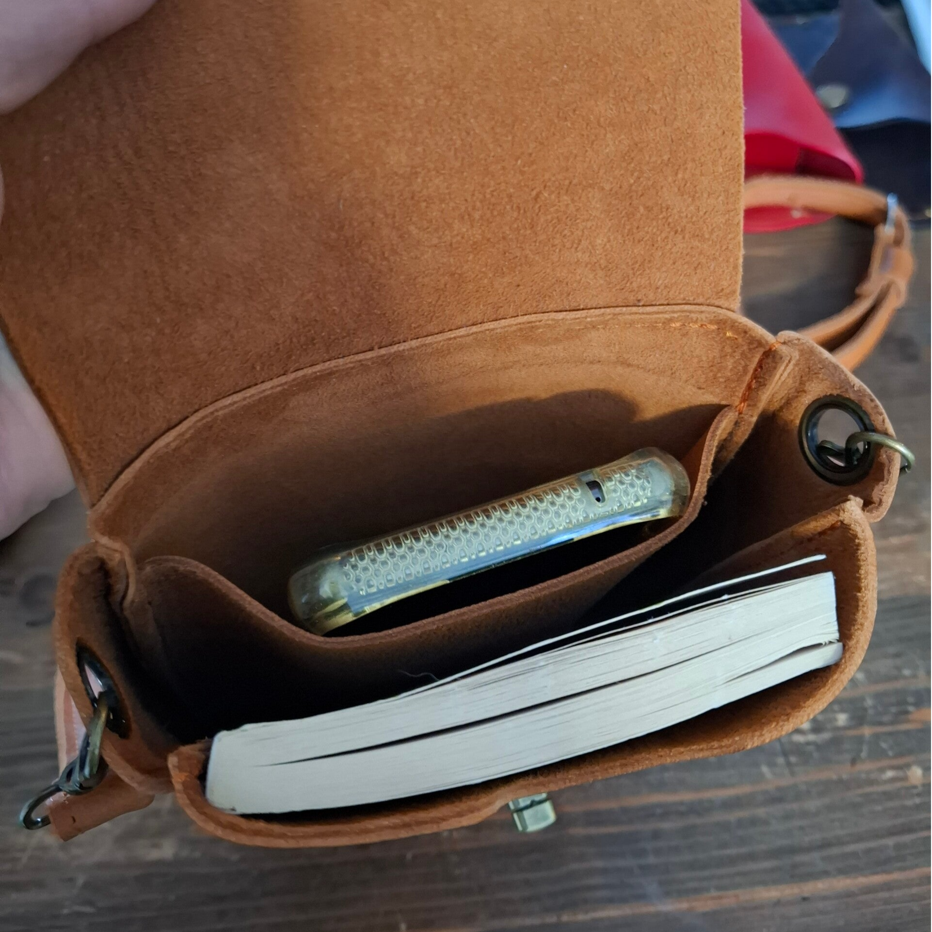 Petite sacoche en cuir souple et doux, pratique pour transporter l'essentiel sans s'encombrer.
